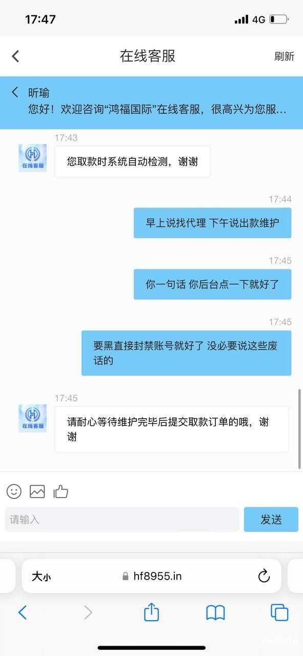 鸿福国际 网址https://m.hf8955.in 300块钱出不起 一直说系统维护