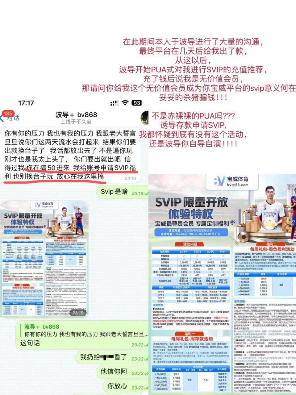 故事的起因在今年3月份,本人经过朋友推荐认识一个宝威平台名叫波导的代理,欧洲杯期间由于一开始上下分都非常正常,并且波导给我大量的平台优惠政策,想我投注量流水更大,当时本人觉得对自己来说无伤大雅,所以就按照他的要求对宝威平台进行充值。