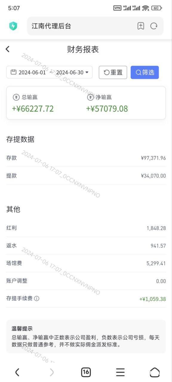 米兰体育已经两个月不发佣金,总共黑了我11万元。5月份我负盈利5万,申请佣金时被拒,理由是“打负”,提交了记录但复审未通过。到了6月,我又负盈利6万,今天申请佣金时,还是被拒,理由同样是“打负”不派发。 实际上,这都是在真人轮盘中输的钱,还想着能回点血,结果两个月被黑了11万。提醒大家远离黑平台,千万不要碰黑台。赢了会被风控,输了就没有返利。